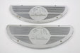 Chrome footboard mats feature alloy construction depicting the 1940 New York World's Fair logo. Attaches by four screws per side. Installation requires drilling of D footboards install by screws or rivets not included.