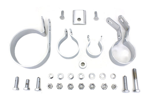 V-TWIN MANUFACTURINGIn stock2-3/4 hanger style muffler clamp set with a short strap to mount muffler body to the frame. Features a chrome finish. Set of two. Bolt set include...