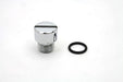 Tappet oil screen plug with a chrome finish.