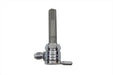 Sifton chrome ball petcock features a stainless steel ball bearing mechanism 22mm nut with a 6AN threaded fitting for fuel line hookup using a stainless steel hose fitting. The ball bearing mechanism provides a secure on/off seal and prevents valves from freezing in the open or closed position. Designs are made for a seated position on the motorcycle with the hose outlet facing a direction to ease fuel line hookup.