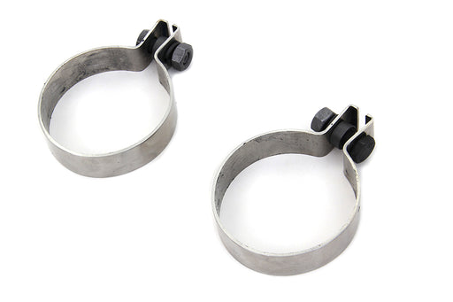V-TWIN MANUFACTURINGIn stock1-3/4 P style exhaust clamp set with short flat side straps that allow universal type mounting. Features a chrome finish. Sold as a set of two. Th...