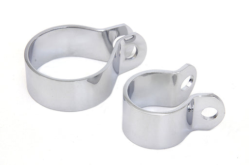 V-TWIN MANUFACTURINGIn stock1-3/4 P style exhaust clamp set with short flat side straps that allow universal type mounting. Features a chrome finish. Sold as a set of two. Th...