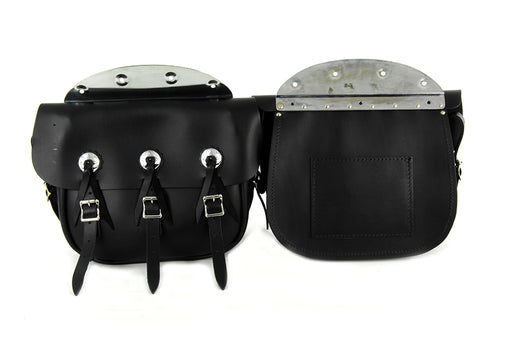 V-TWIN MANUFACTURINGIn stockReplica 1936 style knucklehead black leather saddlebag set includes conchos five strap closure and chrome mounting plates. These saddlebags are re...
