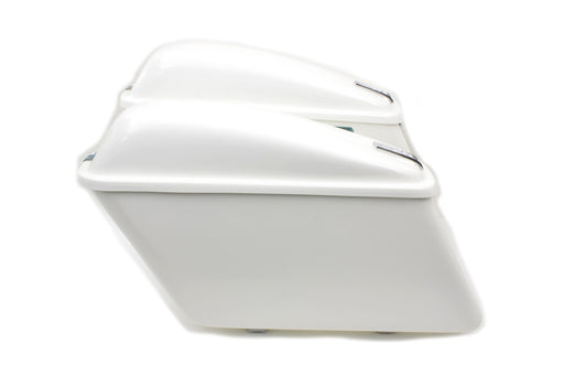 V-TWIN MANUFACTURINGOut of stockWhite saddlebag set includes correct latch assembly keys and hinge. Set includes zinc plated brackets which mounts to FLH rear fender strut V-Tw...