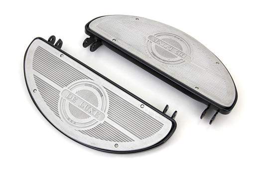 V-TWIN MANUFACTURINGOut of stockReplica footboard set with riveted rubber pad with logo will fit stock mounting brackets. Features a rolled edge rivets as original and gloss blac...