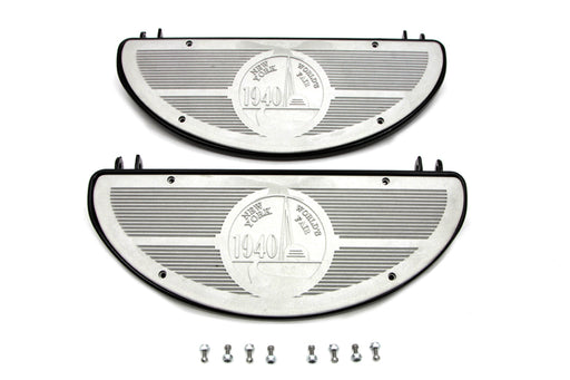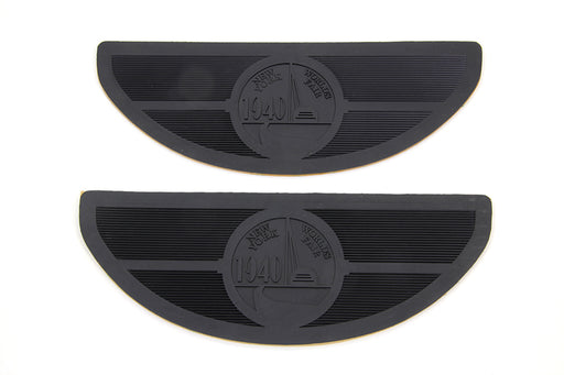 V-TWIN MANUFACTURINGIn stockD shaped black rubber footboard set has 1940 World's Fair logo. Order rivets separately.FITMENT 1941 / 1965 FL ACCESSORY ITEMS27-094727-059727-0781