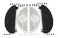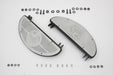 World's Fair half moon footboard kit features black footboards with alloy World's fair inserts. Attach inserts with four screws. Mounting bracket features 10 spacing.