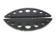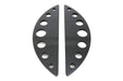 Black half moon footboard set with holes. Mounting bracket features 8 spacing.
