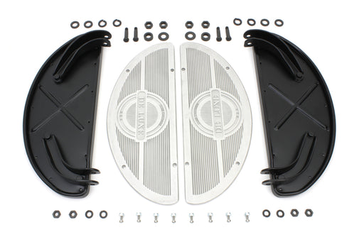 V-TWIN MANUFACTURINGOut of stockDeluxe half moon footboard kit features black footboards with alloy inserts. Mounting bracket features 10 spacing.FITMENT 1941 / 1984 FL 1936 / 1...