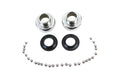 Chrome neck cup kit includes fork stem ball bearing race ball bearings and neck cups.