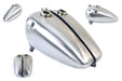 Raw finish gas tank set accepts gas only on both sides 5 gallons. Tanks has 2 3/8 NPT fittings on each tank half. Tank includes 2-1/2 gallon per side for gas only. Tank does not have provision for instrument dash panel or fuel shut off rod. Must use remote oil tank! 45 WR tanks use rubber fuel and oil lines as Original. Tank accepts 1936-46 early shifter gate. Does not accept reserve fuel shut off rod assembly.*NOTE: Uses 2 vented gas caps which are not included. Before installation or painting check gas tank for any flaws. Do not grind or sand seams or welded joints. Clean the inside of the tank pressure test. Check petcock openings ensuring petcock can be easily installed. Use proper hardware for the installation process. Order oil return pipe kit separately. Please install tanks with fitting in frame with motor installed before painting. *NOTE: WR style gas tank sets may require installer to indent the bottom of the tank for head or other clearances required.