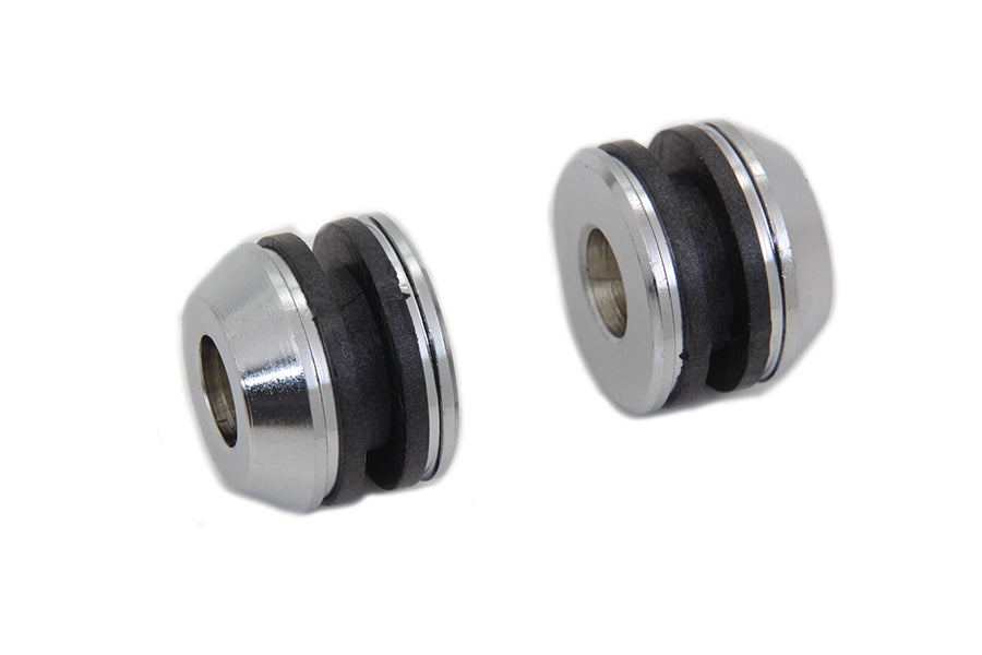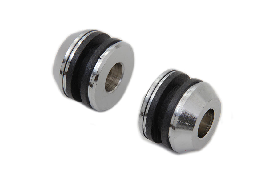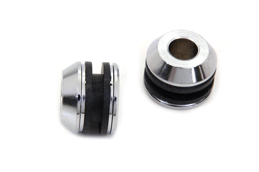 Docking point bushings come in a set of two which includes narrow bushings with rubber installed between chrome finished ends. Standard size as original. For use on luggage racks and sissy bars with the docking hardware kit. Use appropriate docking point bushing as required.