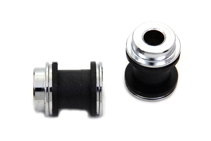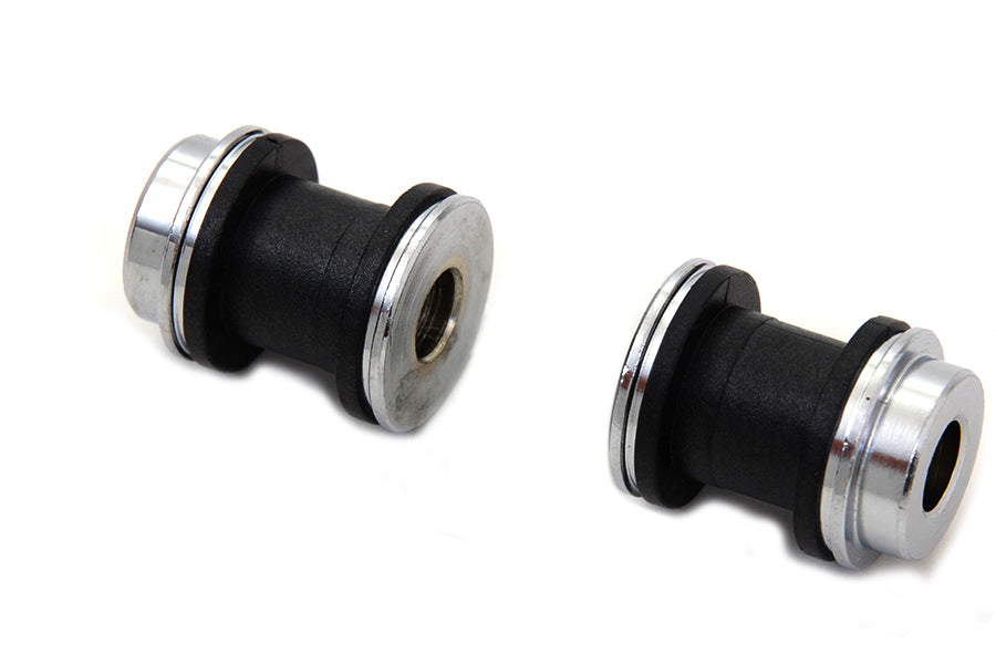 Docking point bushings come in a set of two which includes wide style bushings with rubber installed between chrome finished ends. Standard size as original. For use on luggage racks and sissy bars with the docking hardware kit. Use appropriate docking point bushing as required.