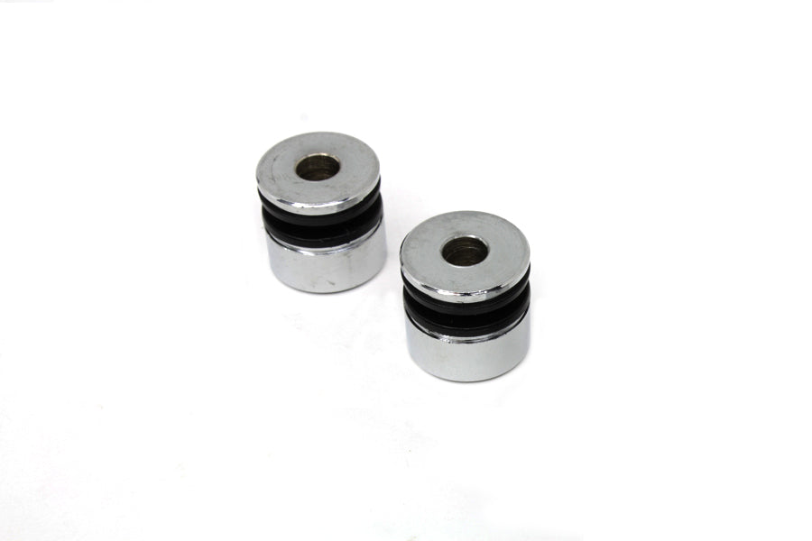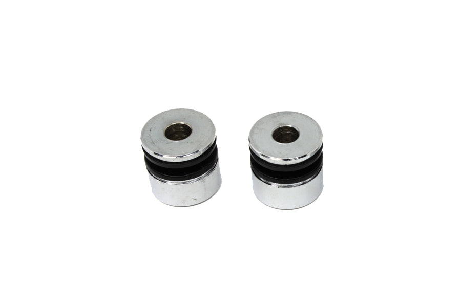 Docking point bushings come in a set of two which includes narrow bushings with rubber installed between chrome finished ends. Standard size as original. For use on luggage racks and sissy bars with the docking hardware kit. Use appropriate docking point bushing as required.