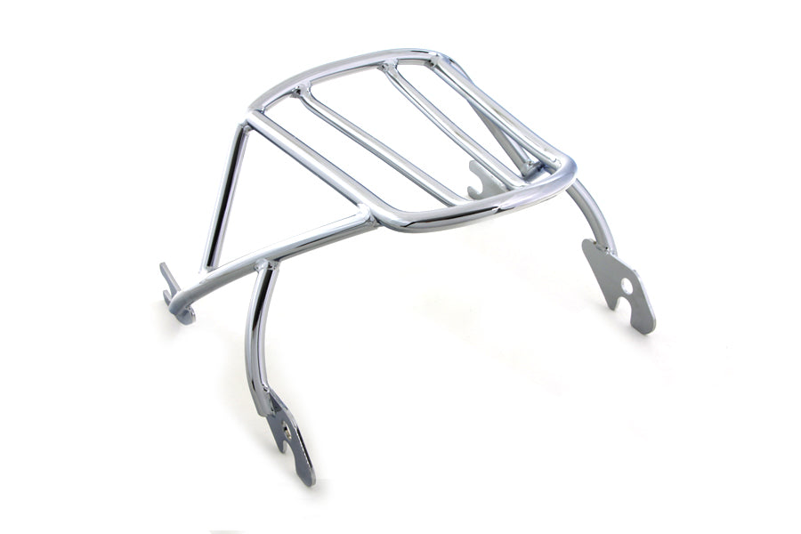 Chrome detachable type luggage rack for XL models. For use with solo seats or when passgenger pillion is removed. Requires separate purchase of mount kit docking hardware and detachable latch kit. Rack is designed for loads of 10 pounds or less. *Note: UPS may consider this part as packaged oversize for shipment as compared to the actual weight which will result in higher shipping costs.