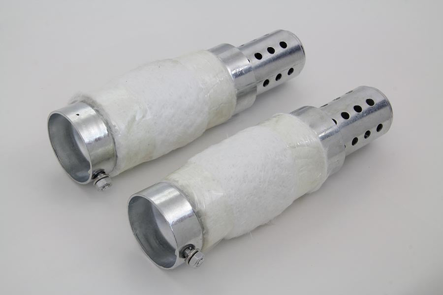 This 8 long zinc plated baffle set fits inside 2-1/16 and 2-1/4 straight pipes wrapped in fiberglass packing. Inner baffle tube may be cut down or removed for greated air flow with a metal blade hacksaw.