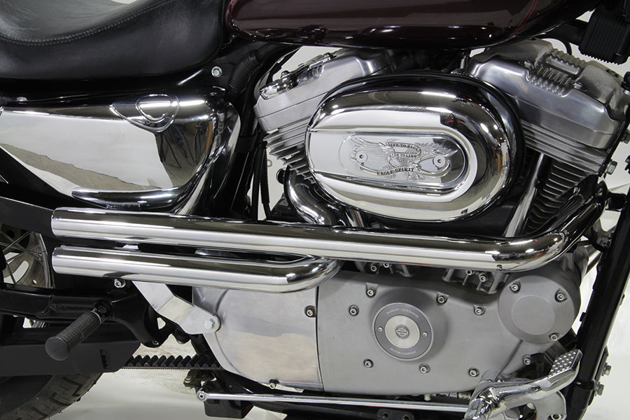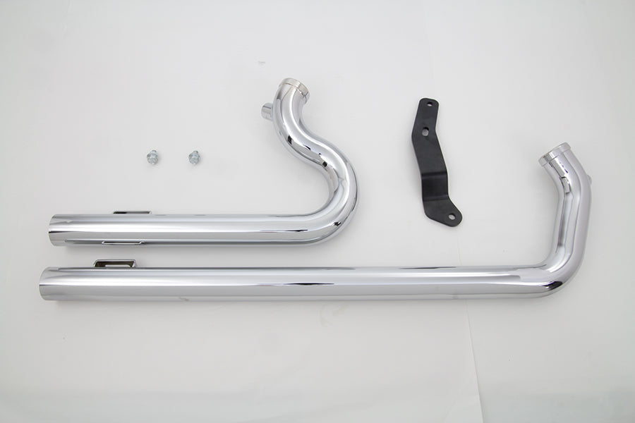 Chrome straight cut ends shot gun dual drag pipe set has a diameter of 1-3/4 for 2007-2013 XL. The front pipe is 60 long and the rear is 40 long. Set includes hanger bracket. Set includes 18mm oxygen sensor bung. For use with swing arm. *WARNING: Exhaust reaches high temperaturs V-Twin is not liable for injuries. Use correct heat shields or fiberglass wraps. **CAUTION: These exhaust products are not legal for sale or use in California on pollution controlled vehicles. These products are intended for non-highway only. *Note: UPS may consider this part as packaged oversize for shipment as compared to the actual weight which will result in higher shipping costs.