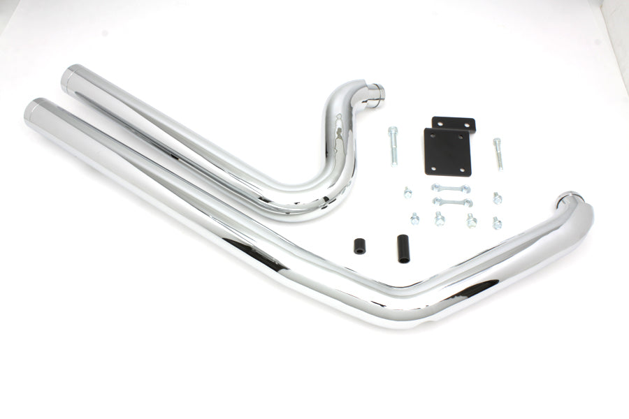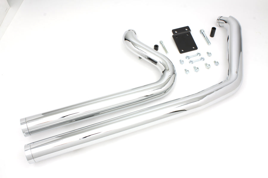 Maxx-Shot drag pipe set features 1-3/4 headers with full coverage 2-1/4 form fitted chrome heat shields. Includes mounting bracket and removable baffles. Sold in a quantity of 2. Set is for FXST and FLST with or without floorboards. Drag pipe set features 1-3/4 drag pipe set with 2-1/4 heatshields attached. Front pipe measures 29 from end to first bend. Rear pipe measures 20-1/2 from end to first bend. Mounts to two bolt holes in the frame below the right rear foot rest. **CAUTION: These exhaust products are not legal for sale or use in California on pollution controlled vehicles. These products are intended for non-highway only. *Note: UPS may consider this part as packaged oversize for shipment as compared to the actual weight which will result in higher shipping costs.