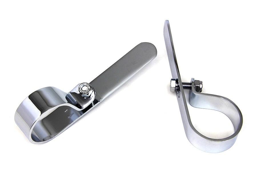 1-3/4 P style exhaust clamp set with long flat side straps that allow universal type mounting. Features a chrome finish. Set of two. Bolt set included.
