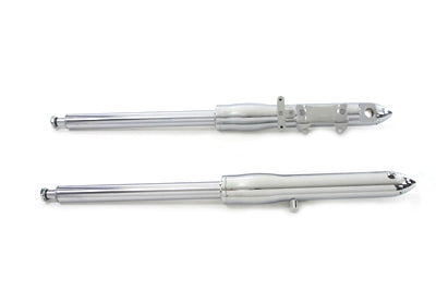 Assembly features chrome sliders with fork tubes and components installed. 41mm fork sliders can also be used on 1948-1984 FL 1971-1984 FX 1986-1999 FLST 1984-1999 FXST 1986-1999 FLST and all billet or stock type 41mm triple trees. The axle holes go straight through on both sides. 1984-1999 FXST calipers are needed for these sliders. *NOTE: Requires installer to fabricate correct axle.