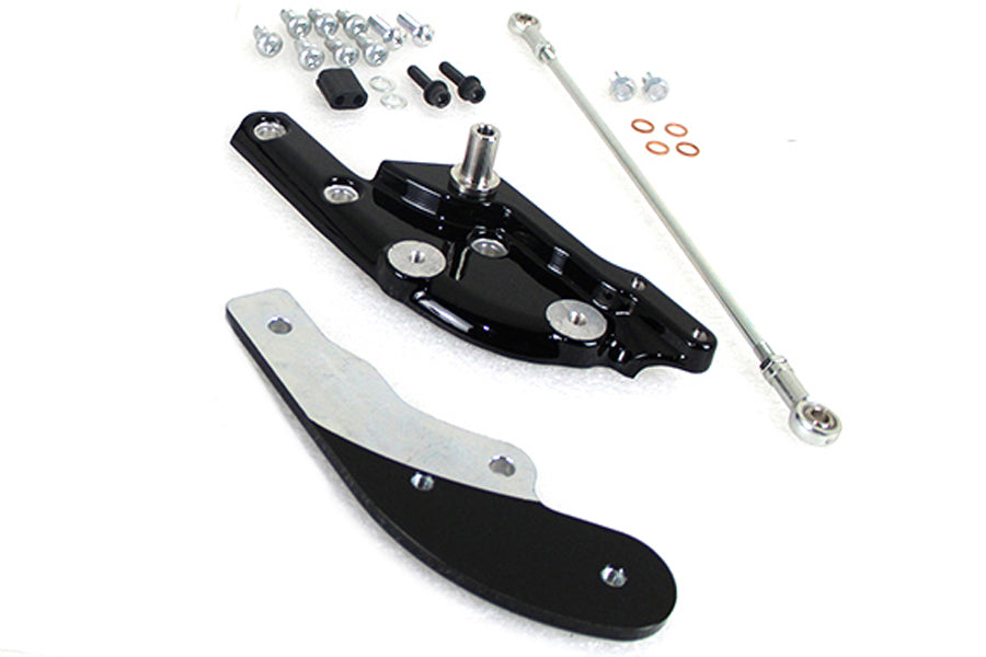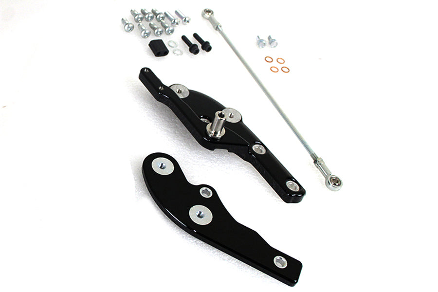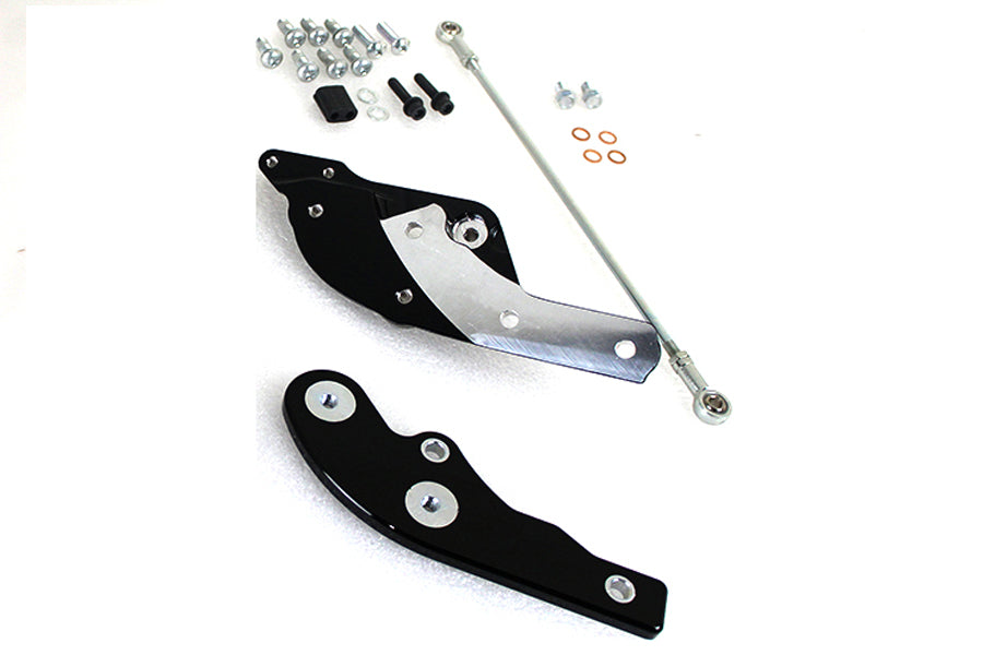 This kit extends the rider foot controls a full 3 forward of the stock location providing the tall rider a comfortable riding position. Includes new black painted brake and shifter mounting assemblies extended shift rod and hardware. ******NOTE: Installation of this kit requires an extended brake line fitted not included. Must order extended brake line separately. *NOTE: Compatible with OE or accessory footpegs brake and shift levers and brake pedal pad and shifter peg. **NOTE: Not compatible with engine guards.