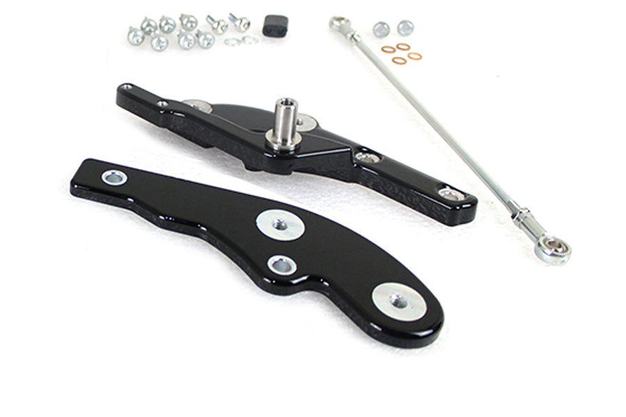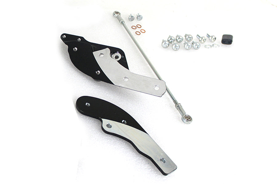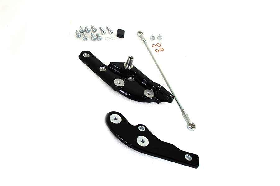 This kit extends the rider foot controls a full 3 forward of the stock location providing the tall rider a comfortable riding position. Includes new black painted brake and shifter mounting assemblies extended shift rod brake line and all necessary hardware. ******NOTE: Installation of this kit requires an extended brake line fitted not included. Must order extended brake line separately. *NOTE: Compatible with OE or accessory footpegs brak and shift levers and brake pedal pad and shifter peg. **NOTE: Not compatible ith engine guards.