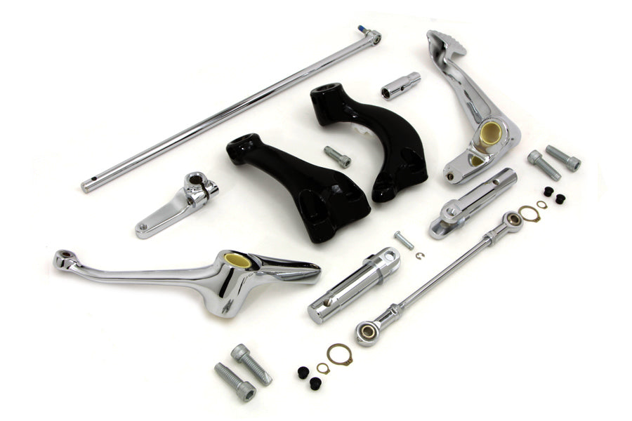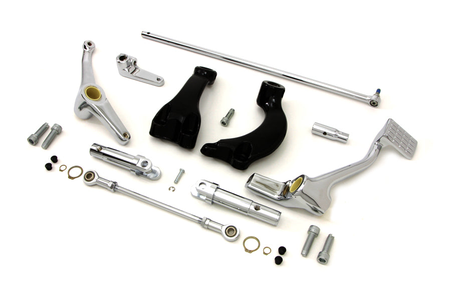 Standard forward control kit features all chrome parts. This complete kit includes all hardware necessary to convert your Sportster model from mid-controls to forward controls. Cats paw soft pegs and ISO shifter peg included!