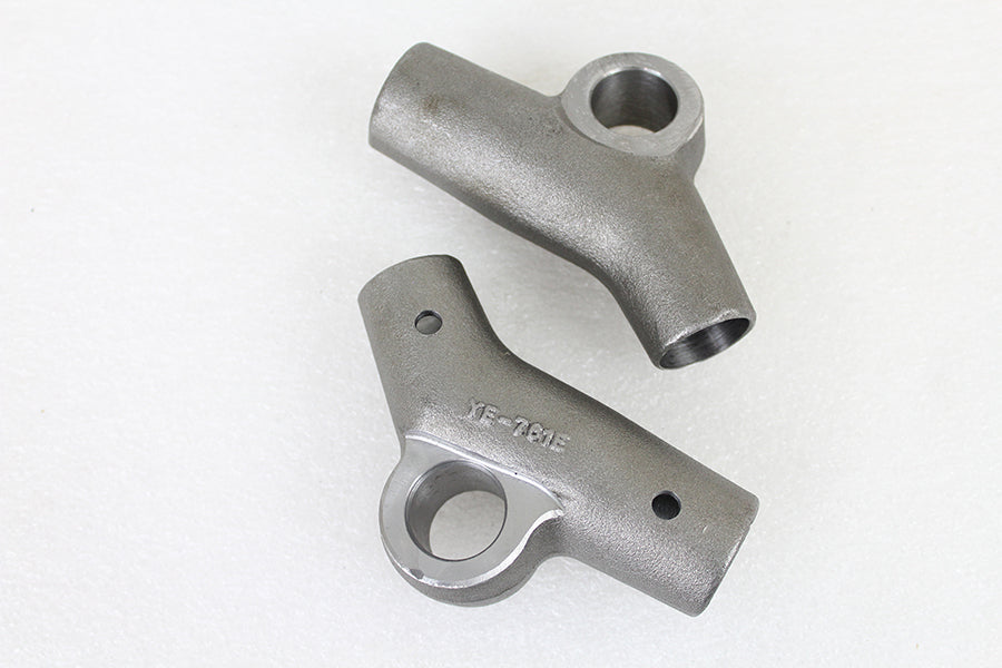 Side car frame mount set with side car loops and embossed forging factory numbers and features a raw finish. For straight leg frame restoration and repair. Set is for use with straight leg Panhead and Knucklehead Big Twin frames. Forgings are drilled to stock outer diameter used for tubes as replacement. *NOTE: Accurately forged with DF XE-621 and the following hallmarks: YE 752 EL & YE E761 ER and is machined as original in raw finish!