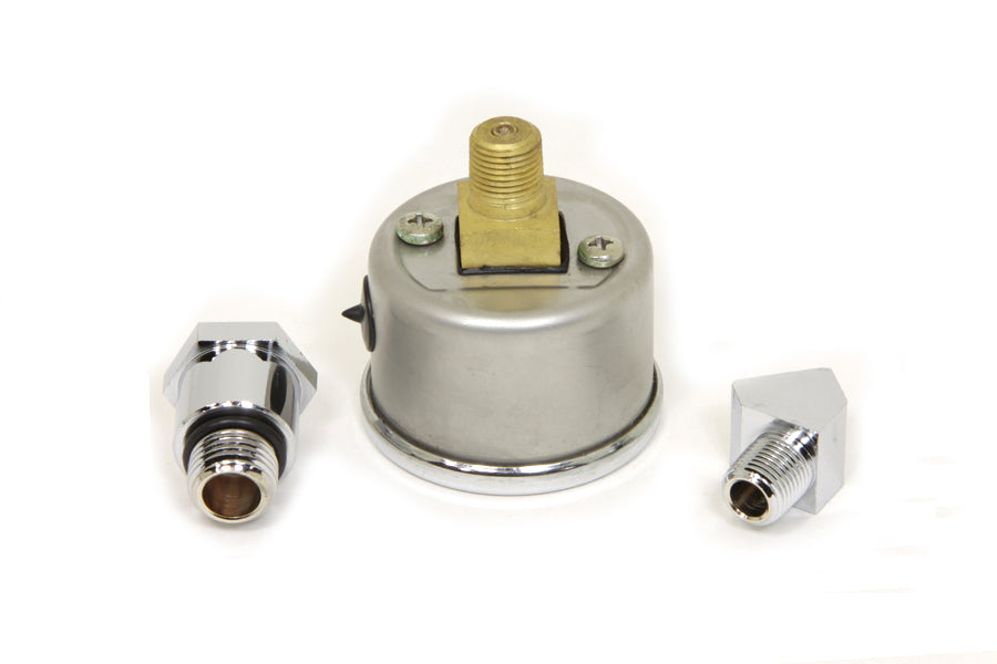 Sifton oil pressure gauge kit includes chrome fittings & oil filled 0-60lbs gauge. Pressure gauge can be directly screwed into the crankcase.