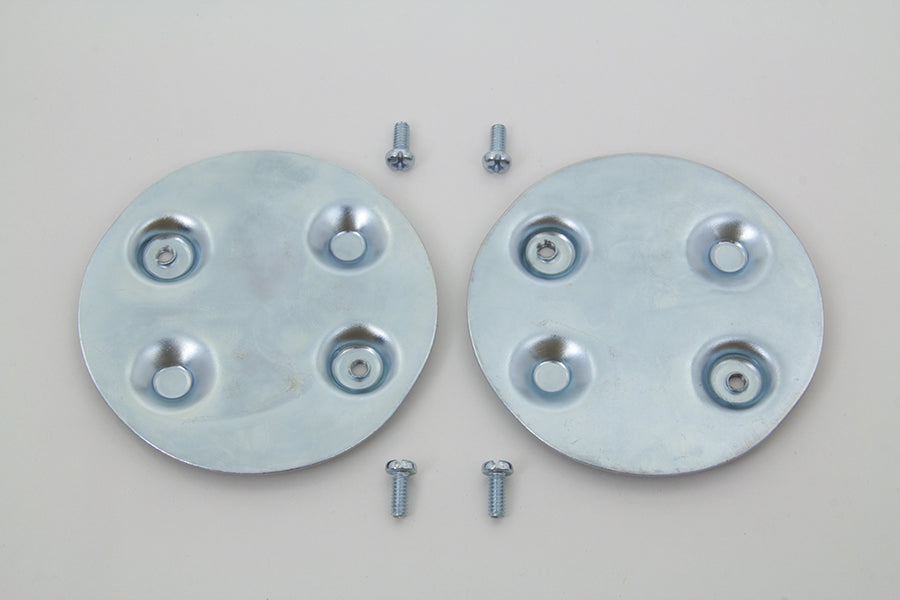 Emblem mounts are flat for mounting on Sportster flat side tanks or other flat surfaces. Tape must be removed to be welded on. Screws included; four #8-32 that are 3/8 long thread.