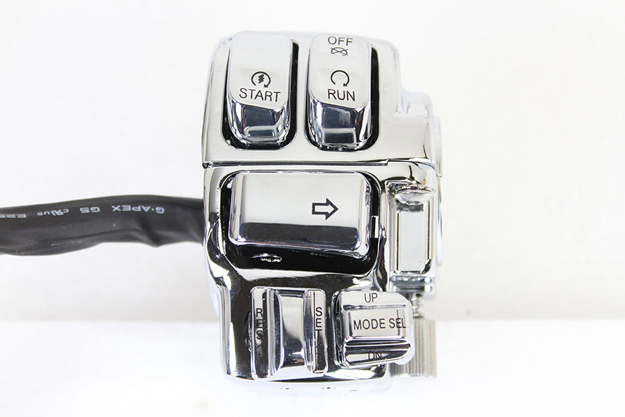 Complete assembly includes brake master cylinder with a 15mm bore and wire switches for dual disc models with audio and cruise control.