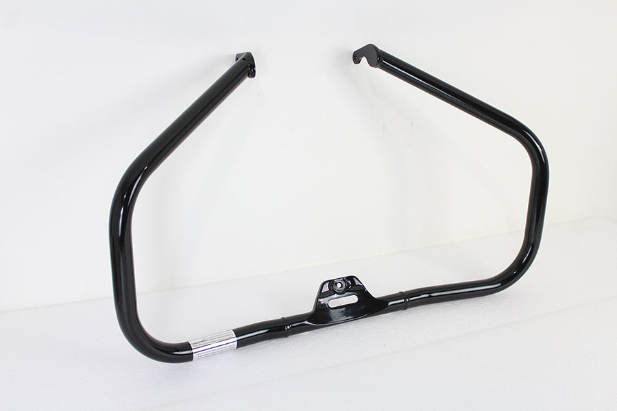 Front engine guard kit features a black finish and is the one piece design. ALl required mounting hardware is included. *NOTE: Does not fit with Extended Reach Forward Control kits.