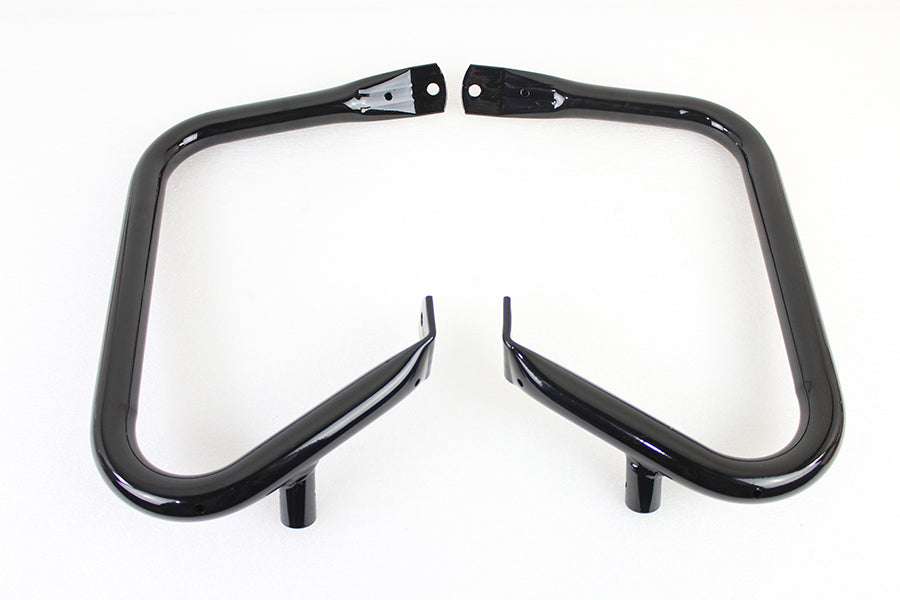 Engine bar set features left and right sides with 1-1/4 tubing. For use with stock type saddle bag supports. 2004-08 FLTR FLHX FLHRS models requires the separate pruchase of OEM #90781-93 Lower Saddlebag Guard Set to complete the installation. WARNING: This engine/frame bar may provide limited leg and cosmetic vehicle protection under unique circumstances (fall over while stopped very low speed slide). They are not made nor intended to provide protection from bodily injury in a collision with an automobile or any other object. *Note: UPS may consider this part as packaged oversize for shipment as compared to the actual weight which will result in higher shipping costs.