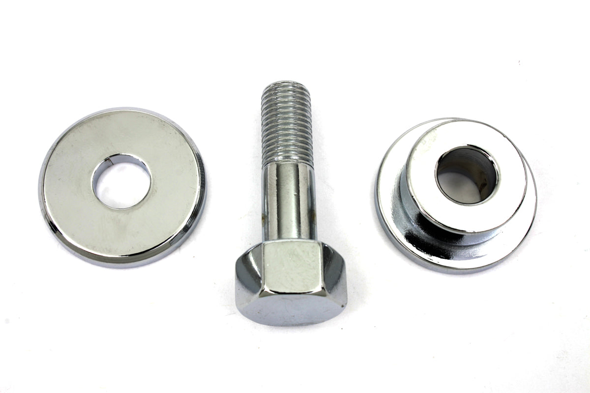 Rear brake pivot washer and spacer kit includes spacer washer and bolt in chrome.