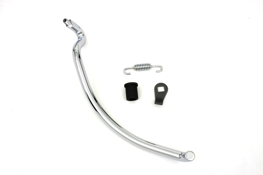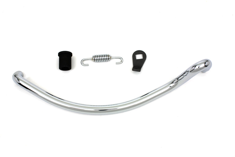 Chrome jiffy kickstand leg kit includes chrome leg chrome spring parkerized bushing and spring plate. This is a 4 piece kit.