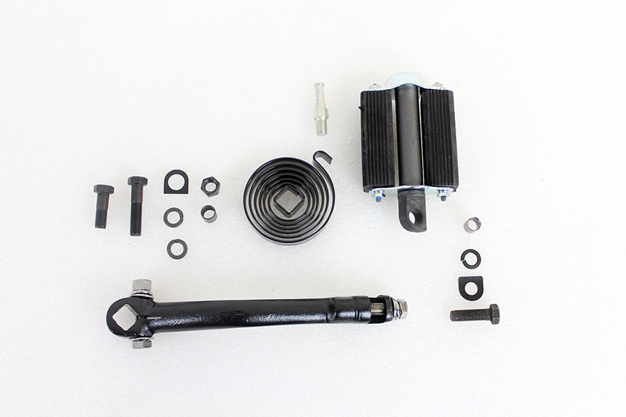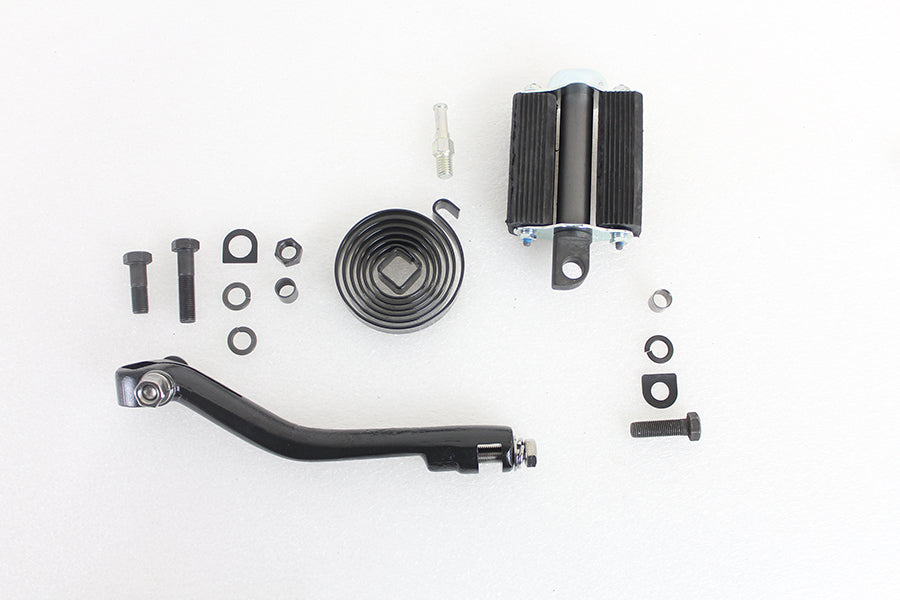 Kick starter arm kit includes black arm with bolt pedal bolt spring spring stud and parkerized kick starter pedal assembly.