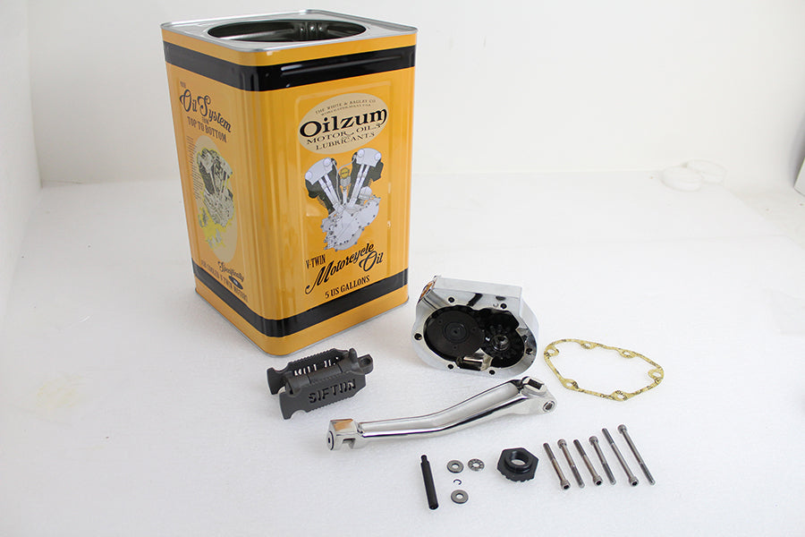 5-speed kick starter kit includes a stainless steel stroker kickstarter arm and a Sifton parkerized kick starter pedal Kick Starter kit also includes the gear set short dipstick bearing kit with washers kick starter shaft inner clutch ramp and the kick starter spring. Fully functional kick starter kit bolt on assembly. No machining required. *NOTE: Kit is pack in a 5 gallon oil can waste basket!