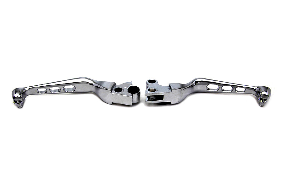 Chrome contour hand lever set features skull ends and is drilled with 3 holes per lever. *NOTE: Does not fit police models or models equipped with hydraulic clutch.