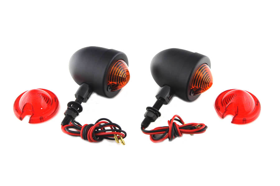 Black bullet lamp set egg shaped with 12 volt 23/8 watt clear bulbs and includes a set of amber and red lenses. *NOTE: For show or decorative use only and are not D.O.T. approved.