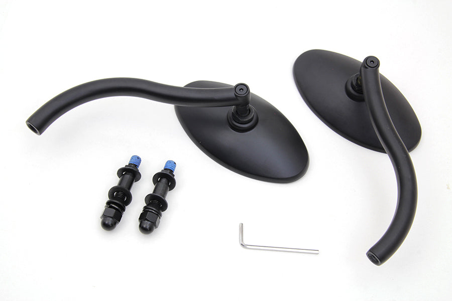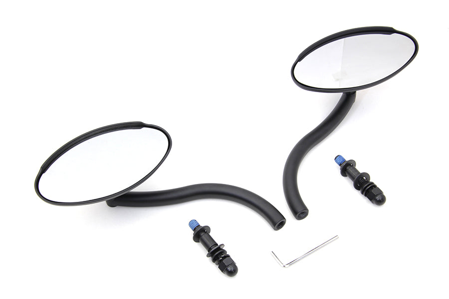 4.5 tall oval mirror set features contour round stem with oval face. Hardware included. Set includes right and left side.