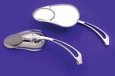 Split vision mirror features outboard convex mirror for wide angle view. The main mirror is for normal view and the small inset shows wider field. Includes spear style billet stems. Includes hardware for installation.