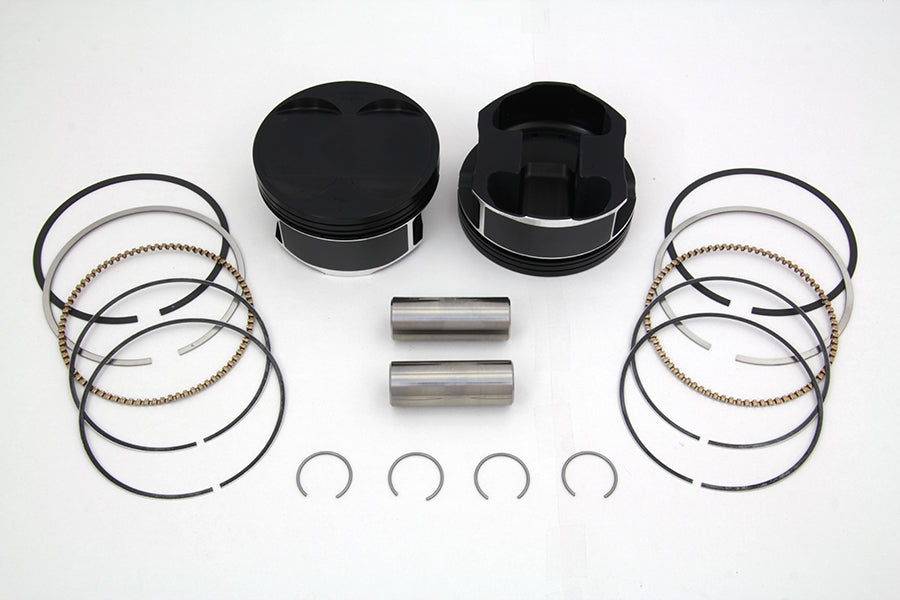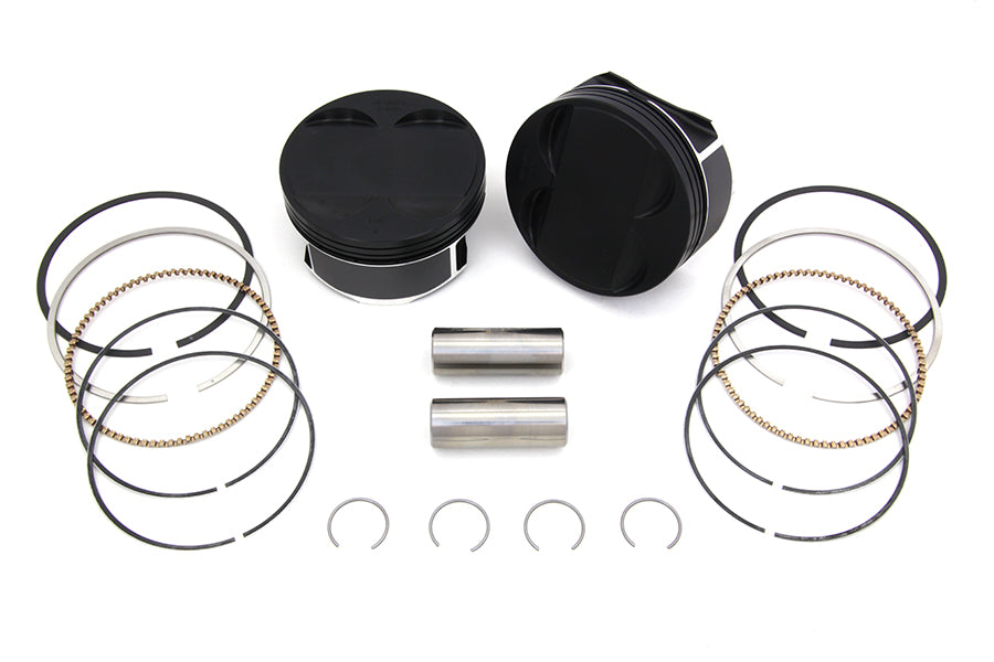 Wiseco piston kit is used for M8 applications. Kit includes 11:1 compression ratio and positive dome -2cc with Armor X coating. Kit is for use with 4.375 stock flywheels. *NOTE: Auto adjusts to cylinder wall no need to measure. **NOTE: Be sure to finish bore size to 4.080