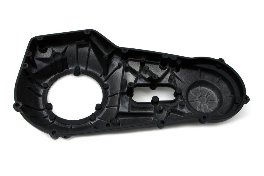 Black three hole outer primary cover. *Note: UPS may consider this part as packaged oversize for shipment as compared to the actual weight which will result in higher shipping costs.