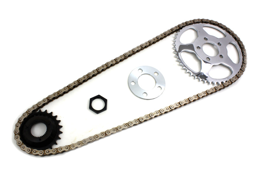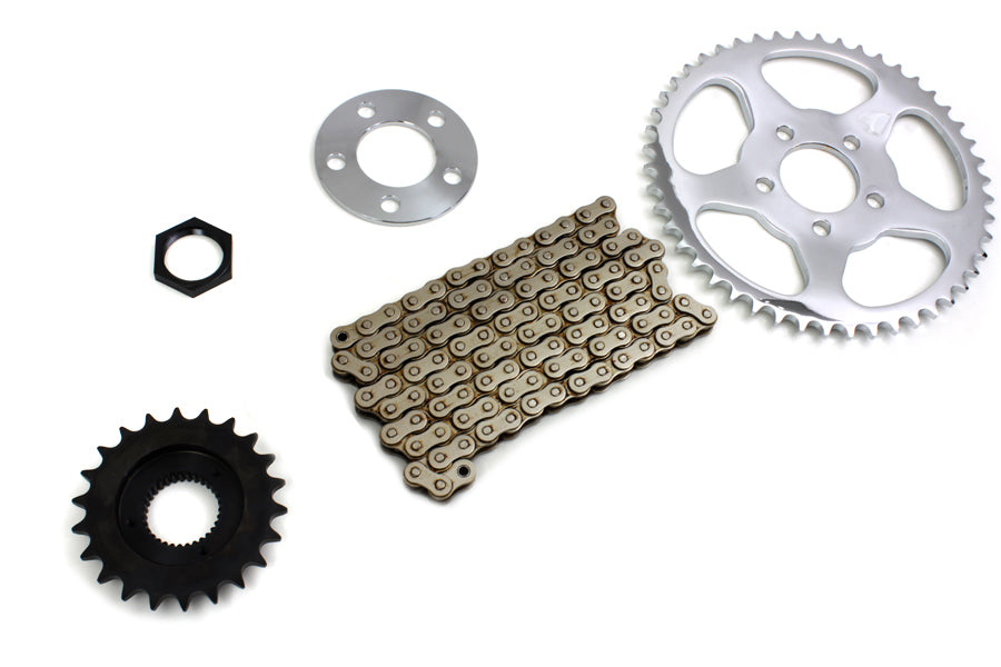 Transmission sprocket conversion kit is used to convert belt drive models to chain drive. Kit features a 108 link chain (67.5 ) and 2.1:1 ratio belt. Includes 22 tooth front sprocket and 48 tooth rear sprocket exact as stock with special nut to accept sprocket. Kit will fit 1991-1999 XL models. Spacers for both applications are included use correct spacer for specific year. See listing in the 1991-UP XL chain drive conversion chart for sprocket tooth count and offset. Small countershaft procket will have lower tooth count large countershaft sprocket will be higher. Front sprocket lists 12.7mm offset rear lists 9.8mm offset. Use the 1/16 shown on rear as listed for correct year.