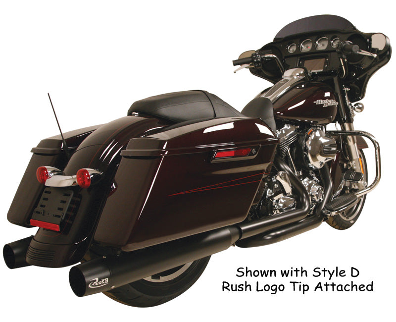 RUSH 4" BLACK BIG LOUIE COMPATIBLE TIP MUFFLERS 2 1/2" BAFFLE FOR HARLEY DAVIDSON TOURING 1995/2014 (EXCEPT 2010 FLTRC & FLHX)