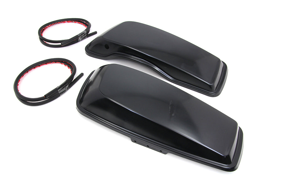 Saddlebag lid set includes right and left side lids without speaker cutout. Lids are plastic with a black finish. Lids will fit a 5 x 7 speaker. All pieces are constructed of black fiberglass and reinforced FRP plastic ready for primer and paint. FRP is made up of poluphenylene oxide/polyamide alloy. *Note: UPS may consider this part as packaged oversize for shipment as compared to the actual weight which will result in higher shipping costs.