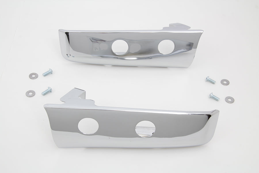 Slotted saddlebag filler strip kit features a chrome finish. Kit hides the saddlebag mounting bracket by filling in the gaps between the fender and the rear of the saddlebags. Kit is without saddlebag guard. Includes left and right side strips with necessary hardware.