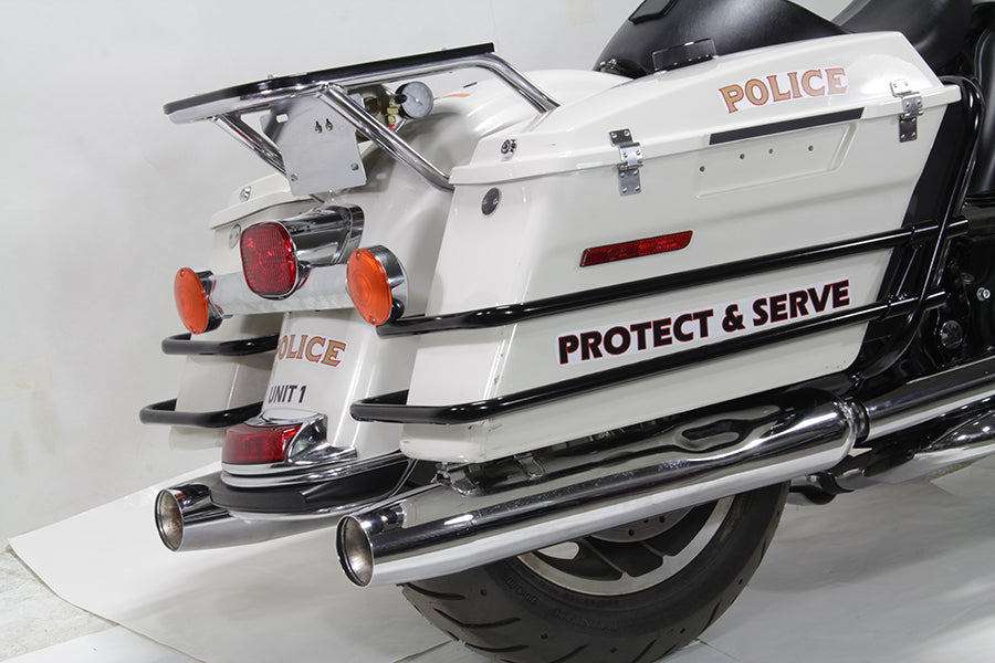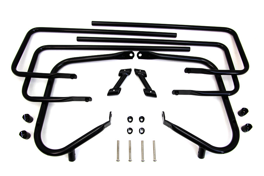 Black saddlebag guard kit is complete with left and right components for OEM type installation.