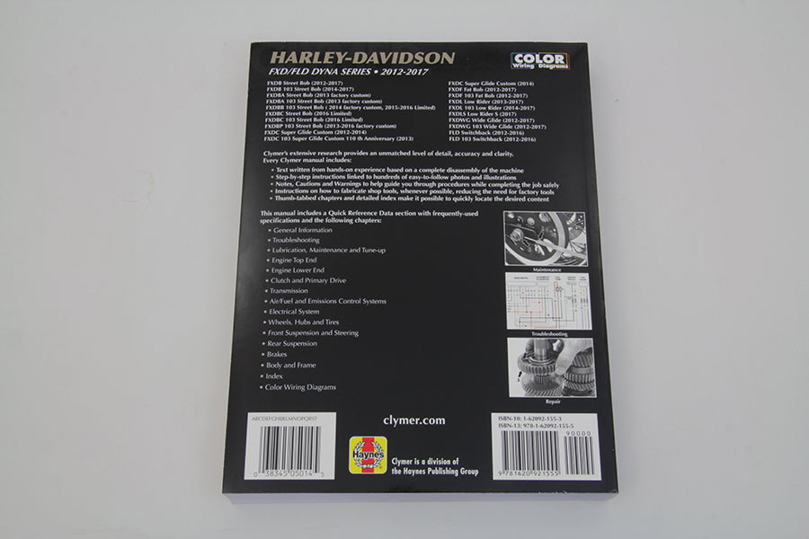 The Clymer Repair Manual contains tips from engine tuning to complete wiring and features many exploded views and photos plus step by step instructions for 2012-2017 Dynaglide models. **NOTE Product May Not Be Returned.