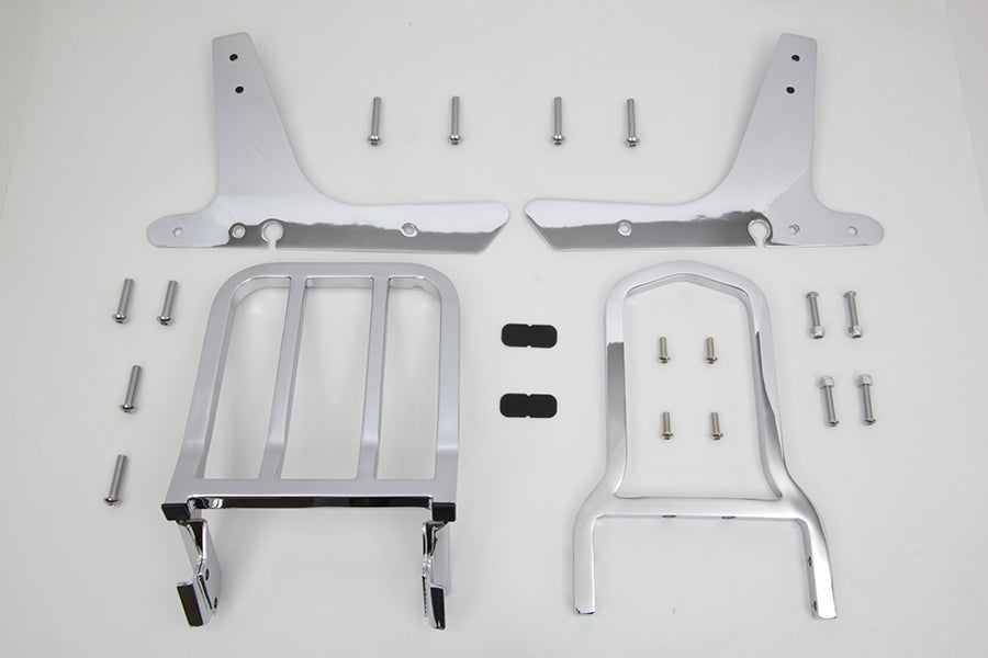 Chrome 16 tall rigid mount sissy bar and luggage rack kit.